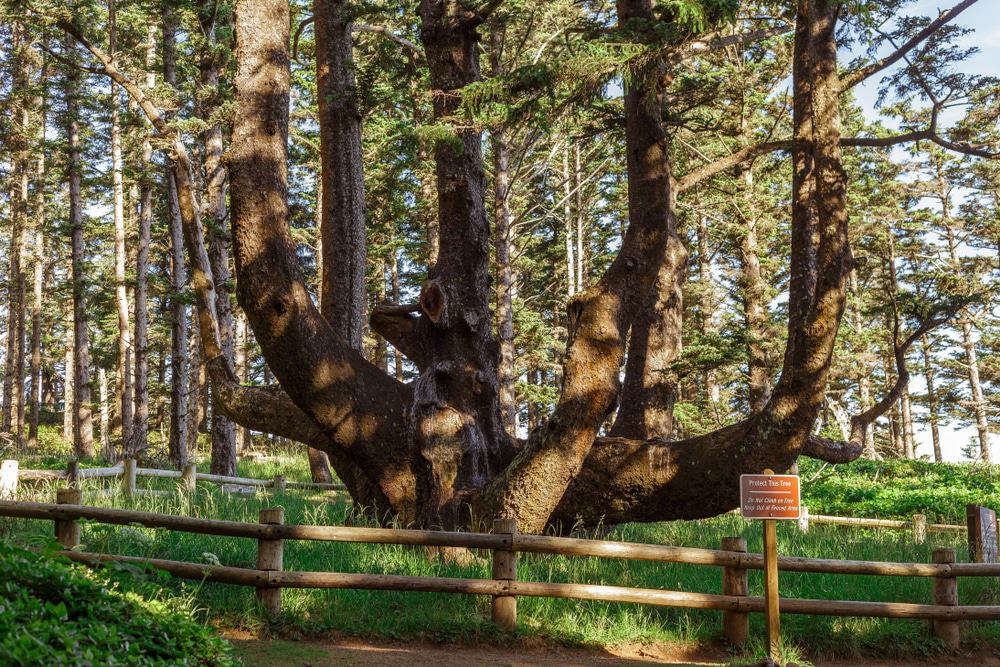 This 300-year-old Sitka spruce inside Cape Meares State Scenic Viewpoint is shaped like something out of a fantasy novel. With massive limbs stretching outward like tentacles, the Octopus Tree has no visible trunk base and spans nearly 60 feet in circumference.