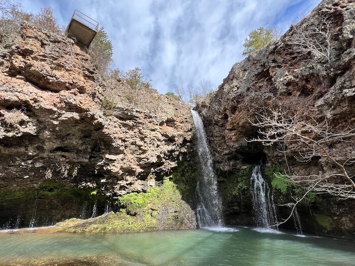 Visit in winter to see parts of the waterfall freeze into dazzling ice formations. It’s one of the most photogenic hidden waterfalls in Oklahoma.