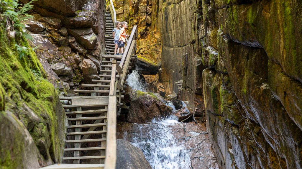 Set in the White Mountains, this park delivers dramatic alpine scenery in a compact, easy-to-explore area. Highlights include the Flume Gorge, a narrow granite canyon with waterfalls, covered bridges, and sweeping views from Cannon Mountain.